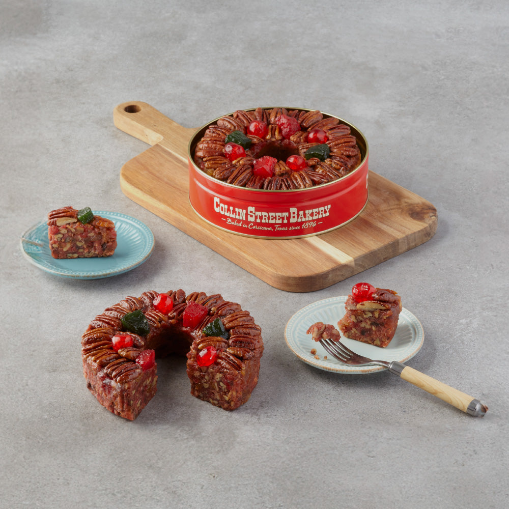 At Collin Street Bakery, we are dedicated to baking only the highest quality cakes. Made with native Texas pecans, organic Costa Rican pineapple, and pure clover honey, our DeLuxe® Fruitcakes are sweet and delicate.